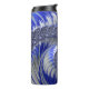 Este tumbler térmico apresenta uma bela arte fractal abstrato em tons azuis, brancos e cinzas.