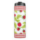 Este país / fazenda, tema de design, apresenta um painel de framboesas aquáticas sobre fundo de gingham vermelho