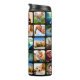 Grelha de fotos quadrada personalizada com garrafa de bebida térmica de moldura arredondada preta. Perfeito para café, chá ou bebidas geladas.