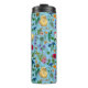 Garrafa Térmica Galinhas e flores silvestres em azul-bebê