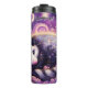 Esta ilustração peculiar representa um gambá giro descansando pacificamente entre nuvens roxas giras e um céu noturno estrelado. O gambá tem uma poeira de brilho espumante no pelo, e uma lua crescente e estrelas brilhantes iluminam a cena do sonho, criando uma atmosfera mágica e serena.
