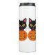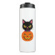 Garrafa Térmica Gato Negro e Jack-O'-Lanterna no Halloween Spooky