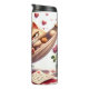 Esta imagem humorística representa dois gatos rabugentos com expressões covardes, unidos numa rede. Os gatos estão cercados por elementos românticos clássicos como corações flutuantes, garrafas de vinho, e um buquê de rosas, criando um contraste engraçado e sarcástico ao seu humor aparentemente infeliz.