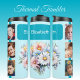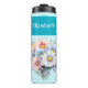 Garrafa Térmica Gerbera flores 6 fotos nome azul
