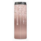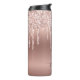 Elegantes e femininos copos térmicos personalizados com letras garrafais em rosa bege, dourado rosa e brilho, com efeito ombre e gotejamento metálico. Este design apresenta seu primeiro nome em uma linda tipografia de letra manuscrita com rabiscos (ou caligrafia), com inicial em folha metálica ombre falsa rosa bege dourado rosa com borda brilhante e glamurosa. São fáceis de personalizar. Ótimos para aquecimento de casa, também para aniversário, casamento, festa de 16 anos, chá de noiva, despedida de solteira, festa de formatura e é para a garota que ama coisas únicas e estilosas.