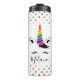 O Tumbler Térmico Glam Rainbow Unicorn projetado pela Enchantfancy Design Company apresenta o contorno da face de um unicórnio com cílios glamourosos, orelhas, um tufo de cabelo e um fabuloso chifre unicórnio arco-íris brilhante. Um padrão de estrelas do arco-íris acentua o fundo. Personalize com sua escolha de nome!