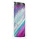 Este tumbler térmico colorido apresenta arte abstrato líquida em cores púrpura, rosa, cor verde e azul claro e um nome personalizável em uma letra de escrita manual púrpura.