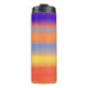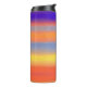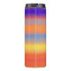 Um vibrante copo térmico envolto em listras horizontais ousadas e pinceladas que misturam roxos profundos, laranjas flamejantes, azuis elétricos, amarelos solares e vermelhos ricos em um gradiente artístico suave. A textura pictórica adiciona um toque caloroso, expressivo e artesanal, enquanto a construção isolada mantém as bebidas quentes ou frias em movimento. Este copo moderno e inspirado na arte traz cor vibrante e energia criativa para deslocamentos diários, treinos e rotinas cotidianas.