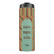 Esta garrafa de água térmica apresenta um padrão de abstrato divertido em tons retrorados de laranja, lacre, ouro e marrom. Ela inclui a citação inspiradora "Grateful. Obrigado. Abençoado. e é personalizado com seu nome ou cópia de sua escolha usando a ferramenta de personalização! Se precisar de ajuda para coordenar itens, envie a mensagem Suzanne via Zazzle ou envie um e-mail para suzparada@gmail.com.