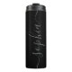 Experience sleek sophistication with this modern Thermal Tumbler featuring an elegant gray script font on a deep black background. This design is perfect for those who prefer a professional, minimalist aesthetic for their daily hydration needs. This Thermal Tumbler is fully personalizable, allowing you to easily replace the placeholder text with your own name or initials to create a unique accessory. Built to keep your favorite beverages at the perfect temperature, it is an ideal companion for the office, gym, or commute. The understated contrast of the gray lettering makes it a versatile and thoughtful custom gift for any occasion.