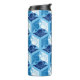 Tumbler em um clássico padrão quimono japonês de gruas estilizadas, arranjadas em um padrão de hexágonos, em marinho/azul-indigo, azul-médio e branco, sobre um fundo azul-claro do céu