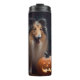 Garrafa Térmica Halloween Rough Collie Com Pumpkins Assustado