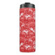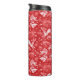 Flask com pintura de lã em tons vermelhos, lebres brancas bonitas saltando em campo de neve. Agulha e felicidade, manipulação digital, 2020 © Clipso-Callipso / Julia Khoroshikh www.juliakhoroshikh.art.art #winterferiados #whiterabbits #holidaygifts #coffeemug #coffeetime #giftideas #balão #drinkware