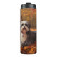 Garrafa Térmica Havanês nas Folhas do outono Cai Inspire