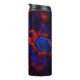 Garrafa Térmica Hexágono azul misturado com curvas vermelhas sobre