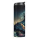 Lindo, majestoso lobo uivando num mar de montanhas, estrelas e pinheiros. O Tumbler Térmico perfeito para você, o entusiasta do lobo. Personalize adicionando seu nome.