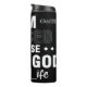 This design powerfully declares "I AM BLESSED BECAUSE I HAVE GOD In My Life." "BLESSED" features a striking dotted texture, while "BECAUSE" is highlighted with diamond accents. The overall black and white palette and strong typography convey a profound message of gratitude and divine presence.