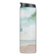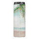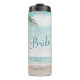 Cena de praia pintada por brisa de ilha, com Ondas de Oceano, praia de Sandy e Palm Trees, com um belo céu azul-lacrimogênio. Com Fontes Modernas De Script De Tipografia. Uma Praia Tropical de Verão, Ou design de casamento de destino - Tumbler Térmico de Noiva Personalizado! Veja meu compro para ver a suíte de casamento inteira para este design!