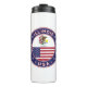Crachá de Illinois com bandeira de Illinois e bandeira de cores EUA, forma arredondada. Emblema de Illinois. Selo de Illinois. Coleção dos Estados Unidos.