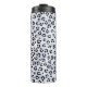 Um teste padrão branco do leopardo com pontos pretos em um fundo textured gelado.