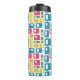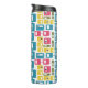 Esta garrafa térmica tem um design moderno do século médio de retângulos arredondados, alguns dos quais são ligados e alguns têm esteritivos, em cores retrorreflectoras de vermelho, ouro, verde e turquesa. Se você gosta do design, mas prefere cores diferentes, me mande mensagem.
