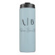 Tumbler térmico isolado personalizado moderno em azul pastel e preto com nome e iniciais. Personalize com as iniciais e o nome para criar o frasco personalizado.