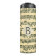 Este tumbler térmico acessível indica um trecho longo, na versão original do manuscrito da mão do compositor, do Chaconne de Johann Sebastian Bach para o violino de solo - como inspirando visualmente porque é jogar e se ouvir. Um monograma à moda é mostrado, em uma forma translúcida do diamante; estes ambos podem ser removidos, se desejados, ou a inicial editada para refletir isso do proprietário.