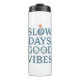 Embrace a more mindful and relaxed way of life with this "Slow Days, Good Vibes" graphic. The clean, minimalist typography with a retro flair serves as a gentle reminder to slow down, breathe, and appreciate the simple moments that bring joy. It's the perfect, calming message for anyone seeking to cultivate a life of peace and positivity.