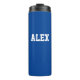 Caneca de viagem moderna, simples e personalizada em azul com tipografia branca. Um retorno essencial à oferta escolar para crianças e professores. Ambientalmente amigável, use-o todos os dias para ficar hidratado. Escolha uma cor e personalize com seu nome.