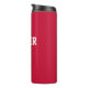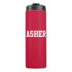 Caneca de viagem moderna, simples e personalizada em vermelho com tipografia branca. Um retorno essencial à oferta escolar para crianças e professores. Ambientalmente amigável, use-o todos os dias para ficar hidratado. Escolha uma cor e personalize com seu nome.