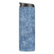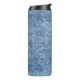 Garrafa Térmica Lave com ácido o denim azul, textura próxima.