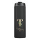 Tumbler térmico preto elegante com um monograma botânico dourado no centro.