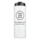 Tumbler simples moderno e na moda para marcas comerciais e troca de promocionais com seu logotipo e duas linhas de texto branco que você pode personalizar com seu nome de empresa, slogan, slogan, site, número de telefone etc., ou excluir. Você pode mudar a cor do fundo e da tipografia selecionando "personalizar ainda mais".