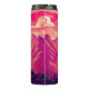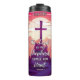 Esta imagem vibrante representa uma cruz rosa impressionante sobre uma montanha, iluminada por um sol ou lua grande e brilhante no fundo. A paisagem é renderizada em tons ousados de rosa e roxo, com montanhas e árvores estilizadas. Sobreposto, a escritura reconfortante do Salm 23:1 lê: "O Senhor é o meu Pastor, NÃO VOU Querer", transmitindo uma mensagem poderosa de orientação divina e provisão em meio a um cenário dramático.