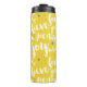 Design de texto branco manuscrito moderno sobre fundo amarelo e faíscas coloridas