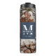 Garrafa Térmica Marinho Quic Moderno - Colagem Azul Monograma e Fo