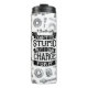 Este gráfico humorístico apresenta a citação "EU NÃO POSSO CORRIGIR O ESTÚPIDO MAS EU POSSO CARREGAR POR ELE", apresentada em negrito, angustiado. Uma chave inglesa e uma chave de fenda flanquearam o texto, reforçando o tema mecânico. O fundo é uma colagem branca de várias peças, engrenagens e fixadores para automóveis, criando um design ocupado, mas coeso, perfeito para a inteligência mecânica.