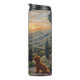 Garrafa Térmica Menina loira, montanhas andando por sol com cão