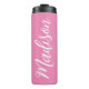 Um humilde térmico monograma rosa personalizado para uma garota que ama presentes simples e escritos à mão. Belo roteiro cursivo ao lado da sua garrafa soletrando seu nome em tipografia elegante.