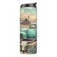 Este trabalho de arte detalhado capta a essência do charme ocidental, apresentando um clássico caminhão-picape de vintage, estacionado em uma paisagem poeirenta do deserto. Uma guitarra acústica correspondente, um chapéu de cowboy de turquesa na moda com uma pena, e uma bota de cowboy intricadamente desenhada destacam-se. Um crânio de touro, cactos, e um celeiro distante com moinho de vento completam essa cena rústica e pituresca.