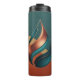 Modern Abstract Teardrop Wave design featuring a Teal and Copper Teardrop overlaid on a Teal Gold and Copper background thermal tumbler / water bottle.