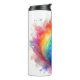 Modern tie dye ink splash design featuring pastel shades of purple, red, yellow, blue and green thermal tumbler / travel drinks bottle.
