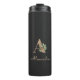 Tumbler térmico preto elegante com um monograma botânico dourado no centro.