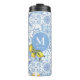 Garrafa Térmica Monograma de fruta de limão, azulejo azul