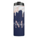 Marinho Elegante Blue e Driping Rosa Dourado Marble Monograma Tumbler com nosso estilo de mármore de folha de ouro rosa de cobre pingando luxuosamente no topo e seu nome personalizado é um monograma no meio. Entre em contato conosco em cedarandstring@gmail.com se precisar de assistência com o design ou produtos correspondentes.