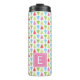 Celebre a temporada com este brilhante e colorido tumbler térmico padrão da árvore de Natal. A design moderna apresenta árvores de Natal em verde, vermelho, rosa e azul com uma letra monográfica branca num quadro quadrado cor-de-rosa. Faz um presente personalizado de excelente. Encha com doces, cacau ou outros doces para um tratamento extra!