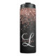 Personalize facilmente este elegante design de tumbler térmico com brilho bonito de ouro rosa em um fundo metálico escovado preto.