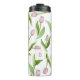 O design do produto apresenta um padrão de flores tulipas cor-de-rosa. Esta ilustração botânica com monograma personalizado faz um chic moderno e um tumbador térmico único.