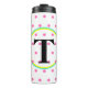 Bonito bolinhas cor-de-rosa sobre fundo branco. Personalize com o seu monograma inicial em texto preto no centro do círculo azul amarelo. Designs originais por TamiraZDesign.