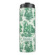Tumbler térmico Elegante vintage green toile de jouy monograma. Belo padrão perfeito de jouy Azul em fundo branco.impressões de Toile são uma fúria constante no momento, este é um elegante e ornamentado toile de jouy com cor damasco exótica, um estilo divertido que atualmente está se tornando atraente para decoração doméstica, roupas, móveis e Capas de ipad, convites e muito mais. O design é clássico e eterno com uma cor espantosa. Você pode alterar todas as cores e fontes do texto, clicar para personalizar ainda mais abaixo da área de personalização do texto que o levará à ferramenta design. Um presente feminino único para aniversário, feriados e qualquer ocasião especial. Seja para dia de os namorados, Natal ou como um presente em geral, faz uma ideia de presente excelente